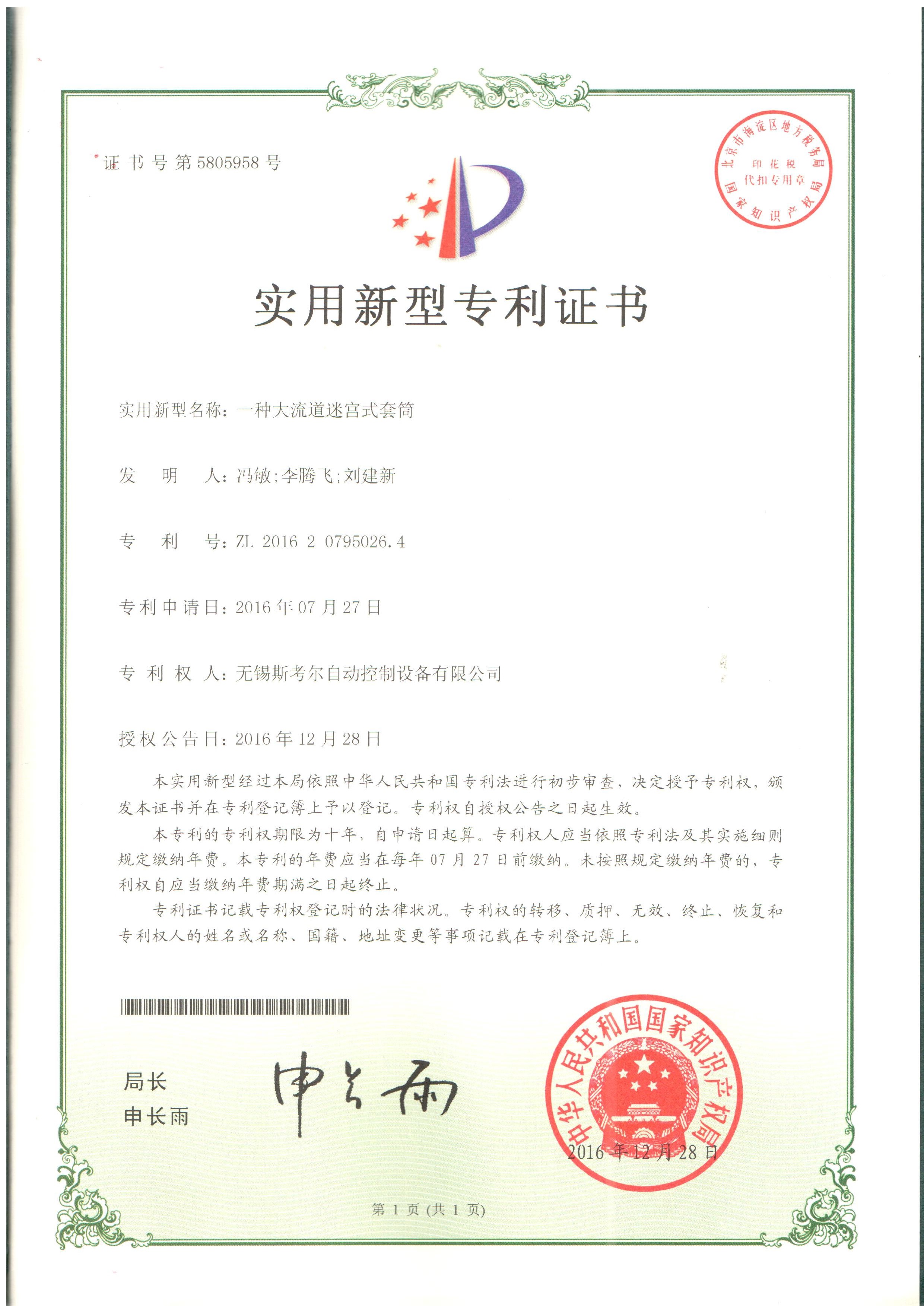 掌握全套迷宮式套筒閥數學模型的無錫SCORE已完成全系列(GC300 ANSI150#~ANSI600# 1”~24” &GC300 ANSI900#~ANSI2500# 1”~12”) 圖紙的標準化設計,同時SCORE針對不同苛刻工況分別設計出:微小流量用迷宮式套筒(號:201620795008.6)、多段式改良線性迷宮式套筒(號:201620784760.0)、大流道迷宮式套筒(號:201620795026.4)
