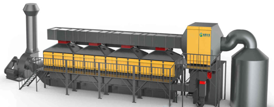 根據(jù)吸附(效率高)和催化燃燒(節(jié)能)兩個(gè)基本原理設(shè)計(jì),采用雙氣路連續(xù)工作,一個(gè)催化燃燒室,兩個(gè)吸附床交替使用。先將有機(jī)廢氣用活性炭吸附,當(dāng)快達(dá)到飽和時(shí)停止吸附,然后用熱氣流將有機(jī)物從活性炭上脫附下來使活性炭再生;脫附下來的有機(jī)物已被濃縮(濃度較原來提高幾十倍)并送往催化燃燒室催化燃燒成二氧化碳及水蒸氣排出。當(dāng)有機(jī)廢氣的濃度達(dá)到2000mg/m3以上時(shí),有機(jī)廢氣在催化床可維持自燃,不用外加熱。燃燒后的尾氣一部分排入大氣,大部分被送往吸附床,用于活性炭再生。這樣可滿足燃燒和吸附所需的熱能,達(dá)到節(jié)能的目的。再生后的可進(jìn)入下次吸附;在脫附時(shí),凈化操作可用另一個(gè)吸附床進(jìn)行,既適合于連續(xù)操作,也適合于間斷操作。